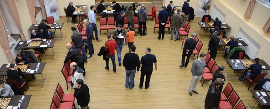Remis zwischen GM Erwin L'Ami (Solingen) und GM Krzysztof Bulski (Wiesbaden)