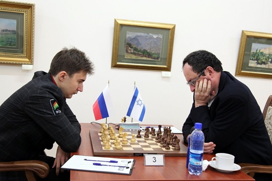 02.12.2012 - Sergey Karjakin genügte in der neunten Runde des laufenden FIDE Grand Prix -Turniers in Tashkent ein Unentschieden gegen Boris Gelfand, um die alleinige Führung zu übernehmen, denn Co-Leader Fabiano Caruana wurde von Wang Hao besiegt. Und da außer dieser einen Partie alle anderen Duelle friedlich endeten, hat Karjakin derzeit die besten Chancen, das Turnier zu gewinnen. Aber noch sind zwei Runden zu spielen, in denen die Verfolger das Ruder noch umreißen können. Die vorletzte Runde läuft aktuell, und die Schlussrunde startet morgen um 8 Uhr.