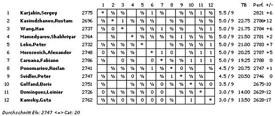 TopTurniere Tashkent GP - Karjakin führt alleine Wang schlägt Caruana