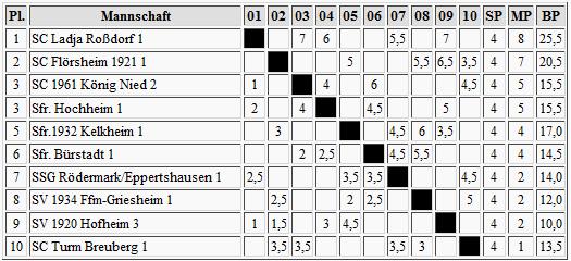 In der Südgruppe geht Ladja Roßdorf ohne jeden Verlustpunkt ins neue Jahr und im Mai wohl auch ab in die Verbandsliga. Flörsheim kann da noch zum Showstopper werden, oder zum Punktelieferant; aber das wissen wir erst im April zur 8. Runde.