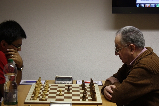 18.12.2012 - Als Tabellenführer FM Behrang Sadeghi im Wissen, dass ihm ein halber Punkt zum Turniersieg genügen würde, seinem Gegner Ferdinand Niebling bereits im ersten Zug das Remis anbot, lehnte dieser ungerührt ab, indem er seinen Zug machte. Wie sich später herausstellte, hatte er das Remisangebot schlicht nicht gehört! Dies sollte sich im weiteren Partieverlauf als sein Glück herausstellen. Lange Zeit gestaltete sich das Geschehen offen, doch im Endspiel erarbeitete sich der Nestor leichte Vorteile und brachte den weißen Monarchen in latente Mattgefahr. Unter diesem Druck brach der Fidemeister überraschend schnell zusammen, indem er seinen Turm einstellte. Damit ist Niebling mit 77 Jahren der dritte Frankfurter Chess960-Stadtmeister, obwohl am Nebenbrett Mike Rosa ebenfalls siegen konnte und somit - als einziger Spieler ungeschlagen - auch 5,5 Punkte vorzuweisen hat. Doch die Fortschrittswertung sieht den Oldie im Vorteil, und nicht nur der Zweitplatzierte gönnt ihm das von ganzem Herzen. Sadeghi blieb "nur" der dritte Rang und die Erkenntnis, dass man Nestoren ruhig etwas lauter Remis bieten sollte. Der Dank sämtlicher Teilnehmer gilt Hans-Walter Schmitt und dem Chess Tigers Training Center für perfekte Spielbedingungen und natürlich dem hessischen Bezirk 5 (vertreten durch den Vorsitzenden Thorsten Ostermeier) sowie Hans-Dieter Post für eine gewohnt souveräne Turnierleitung.