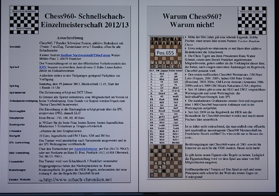 Bisherige Berichte zur 3. Frankfurter Chess960 Stadtmeisterschaft: