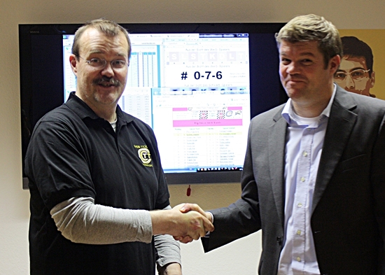Thorsten Ostermeier und Hans-Dieter Post mitten in den Vorbereitungen für die Siegerehrung
