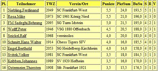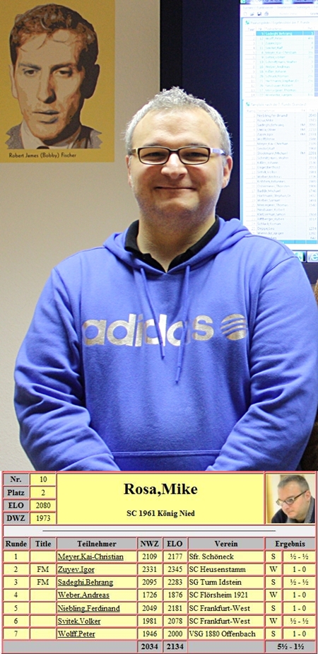 An Brett 2 musste Peter Wolff gegen Mike Rosa die einzige Niederlage quittieren, gewann aber immerhin noch die Ratinggruppe 1