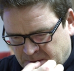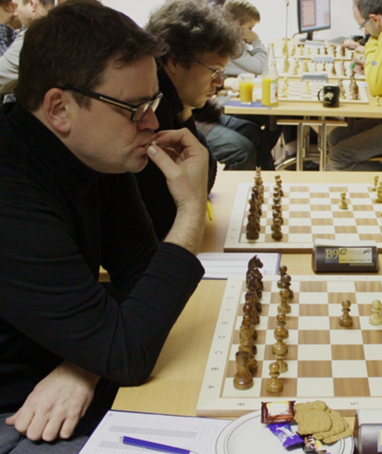 08.01.2013 - Vom 02. bis 06. Januar fand in Nordhessen das Bad Zwestener Schachfestival statt. Mit lediglich 48 Teilnehmern hätte dieses Open möglicherweise nicht den Weg auf diese Seite geschafft, hätte sich dort nicht Bemerkenswertes ereignet. Immerhin, an der Spitze der Startrangliste tummelten sich mit Andrey Orlov, Thomas Pähtz und Viesturs Meijers drei Großmeister, so dass einige Spannung um den Turniersieg in der Luft lag. Doch gleich zum Auftakt leistete sich Meijers einen Schnitzer besonderer Qualität. Er spielte mit den schwarzen Steinen gegen Andreas Weber (Bild) vom SC Flörsheim 1921 und wurde von diesem nach allen Regeln der Schachkunst in nur 24 Zügen im Smith Morra Gambit zerlegt! Der Ratingunterschied betrug 603 ELO-Punkte und sogar 725 DWZ-Punkte! Nein, Weber ist kein junger, unterbewerteter Nachwuchsspieler, sondern ein Anfangvierziger, der längst mehr Energie darauf verwendet, seinem Sohn zu einem guten Schachspieler zu machen. Und nun, mit dem GM-Skalp an seinem Gürtel, wird er beim Analysieren mit dem Filius und den Vereinskollegen stets die "Ich habe einen GM geschlagen, und Ihr?"-Karte ziehen können. Niemand wird ihm diesen Moment mehr nehmen, und sein Mitleid für Meijers sollte sich ebenfalls in Grenzen halten, denn dieser machte aus diesem Scheibenkleister tatsächlich noch Gold, indem er die nächsten 6 Partien und damit das Turnier gewann! Der deutsche Internationale Meister Christof Sielecki hat sich der besagten Partie in einer langen Video-Analyse angenommen, in welcher er auch nach Gründen für das meisterliche Versagen sucht. Wir haben uns zudem an den GM-Killer gewendet, ihn nach den Ereignissen in Bad Zwesten befragt und ein ausführliches und emotionales Statement erhalten.