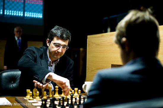 25.03.2013 - Das heutige Spitzenduell der neunten Runde beim Kandidatenturnier in London zwischen Vladimir Kramnik und Magnus Carlsen hielt, was es zuvor versprach. Kramnik kam mit seinem Katalanen sehr gut aus der Eröffnung heraus und konnte sogar einen norwegischen Bauern einkassieren, doch Carlsen verteidigte sich fehlerfrei und zwang seinen enttäuschten Gegner ins Remis. Dies bot Levon Aronian die Chance, mit einem Sieg gegen Boris Gelfand die alleinige Führung zu übernehmen, aber stattdessen unterlief dem Armenier ein schwerer Fehler, nach welchem er mit viel Glück "nur" ein Doppelturmendspiel mit Minusbauer erreichte. Aber der Vize-Weltmeister wies souverän nach, dass nicht alle Turmendspiele remis sind, gewann und bescherte Carlsen die alleinige Führung. Peter Svidler und Alexander Grischuk sind bekanntlich befreundet, was sie aber nicht davon abhält - wie heute - auf dem Brett verbissen zu kämpfen. Erst überraschte Grischuk seinen Gegner in der Eröffnung mit einem Springeropfer, doch dieser fand seinerseits ein interessantes Damenopfer. Letztlich endete das "Freundschaftsspiel" mit einem gerechten Unentschieden. Im Kellerduell zwischen Vassily Ivanchuk und Teimour Radjabov gelang dem Ukrainer tatsächlich der erste Sieg. Seine Zeiteinteilung war perfekt und seine Endspieltechnik im komplizierten Doppelturmendspiel beeindruckend. Des Einen Freude ist halt manchmal auch des Anderen Leid: Radjabov ist nach dieser neuerlichen Niederlage alleiniger Letzter. Am Dienstag haben die Spieler ihren vorletzten Ruhetag. Runde 10 beginnt am Mittwoch wie immer um 15 Uhr.