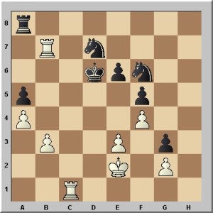 30...Sd5 31.h4 h6 32.a4 g5 33.hxg5 hxg5 34.Kf1 g4 35.Ke2 S5f6 36.b3 Se8
