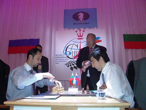10.10.2006 - Veselin Topalov gab sich heute wieder alle Mühe, auch auf dem Schachbrett kreativ zu sein und konfrontierte Vladimir Kramnik schon im 8. Zug mit einer Neuerung. Doch wirklich erschüttern konnte er Kramnik damit nicht. Nach 66 Zügen einigten sich die Gegner auf ein Remis und somit muss nun entweder die letzte Partie am Donnerstag, der Tie-Break oder eine Gerichtsbarkeit darüber befinden, wer denn der einzige Weltmeister sein soll. Vielleicht ein Vorteil für Kramnik, der bereits gegen Peter Leko gezeigt hat, dass er die Big Points zu erzielen weiß.