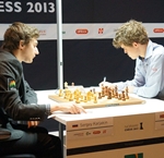18.06.2013 - In nur 29 Zügen schlug Magnus Carlsen einen scheinbar überforderten Viswanathan Anand in der fünften Runde des Tal Memorials. Offenbar überrascht von der Variantenwahl seines Gegenübers ging der Weltmeister laut Carlsen die Eröffnung zu passiv an und erlaubte Weiß alsbald ein Spiel auf nur noch zwei Ergebnisse. Als der WM-Herausforderer schließlich im Zentrum durchbrach, hatte Anand dem nichts mehr entgegenzusetzen. Als besonderes Omen für den WM-Kampf wollte Carlsen den Sieg nicht verstehen, aber den positiven Rückenwind wird er natürlich mit nach Chennai nehmen. Bei aller WM-Brisanz darf man aber auch die anderen Partien nicht vergessen. Boris Gelfand nämlich schlug Alexander Morozevich und zog so mit Hikaru Nakamura gleich an die Spitze. Der Amerikaner genehmigte sich als Weißer ein kurzes Remis gegen Dmitry Andreikin, und so endeten übrigens auch die restlichen Duelle. Am Mittwoch steht um 13 Uhr die sechste Runde an. Eine interessante Tatsache am Rande: Bis jetzt gibt es trotz der vier russischen Spieler noch keine einzige Gewinnpartie für DIE Schachnation schlechthin! Ergebnisse, Tabelle, Partien & Bilder... Turnierseite