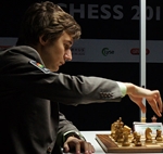 15.06.2013 - Dass in der Weltspitze jeder gegen jeden gewinnen kann, ist hinlänglich bekannt, da stellt auch Magnus Carlsen keine Ausnahme dar. In der heutigen dritten Runde des Tal Memorials stellte der Norweger gegen Fabiano Caruana frühzeitig einen Bauern ein und kämpfte fortan ums Remis. Das schien im Turmendspiel auch zum Greifen nahe, aber dann leistete sich Carlsen einen schlimmen Fehler und wurde von Caruana studienartig ausgespielt. Damit schlug der Italiener nach dem Weltmeister auch noch die Nummer 1 der Weltrangliste. Apropos Weltmeister, Viswanathan Anand steigert sich von Partie zu Partie und konnte heute gegen Alexander Morozevich den ersten Sieg erzielen, Der Moskauer geriet in eine passive Lage und versuchte, sich mit zwei Bauernopfern aus der Klemme zu befreien. Doch Anand wies nach, dass dies taktisch nicht gerechtfertigt war und sammelte den vollen Zähler ein. Den dritten Sieg des Tages genehmigte sich Hikaru Nakamura. Sein Gegenüber Sergey Karjakin wehrte sich zwar mit Händen und Füssen, doch der Amerikaner holte sich auch von der russischen Nummer 2 den ganzen Punkt, nachdem er ja gestern bereits die Nummer 1 geschlagen hatte. Die beiden anderen Partien der dritten Runde endeten bereits nach 23 bzw. 26 Zügen friedlich. Nach dem ersten "0 aus 2" seiner Karriere wollte Vladimir Kramnik gegen Shakhriyar Mamedyarov nur ein Remis und bekam es auch, und Boris Gelfand holte als Weißer gegen Dmitry Andreikin keinen Vorteil aus der Eröffnung und stellte den Kampf frühzeitig ein. Daher führen mit Caruana, Nakamura, Gelfand und Mamedyarov gleich vier Spieler mit +1 vor dem morgigen Ruhetag. Am Montag geht es mit der vierten Runde wie gewohnt um 13 Uhr weiter - wieder mit GM Klaus Bischoff live bei ChessBase. Ergebnisse, Tabelle, Partien & Bilder... Turnierseite