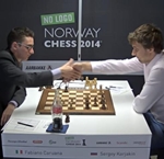 05.06.2014 - Viel hat nicht gefehlt, und Fabiano Caruana hätte in der dritten Runde des No Logo Norway Chess auch den Weltmeister über die Klinge springen lassen. Magnus Carlsen sah sich ausgangs des Mittelspiels gezwungen, einen Springer für drei Bauern zu geben und fortan ums Remis zu kämpfen. Dies wiederum tat er mit Erfolg, aber mit seinem Spiel ist der junge Champion mit nunmehr drei Unentschieden nicht wirklich zufrieden. Regelrecht zerknirscht war bzw. ist Levon Aronian. Schon in der Eröffnung unterlief dem Armenier gegen Alexander Grischuk ein schwerer Erinnerungsfehler, den der Russe gerne nutzte. Damit steht dieser virtuell bei einer ELO von 2797 und könnte gar mit einer 2800 nach Hause kommen. Gut gelaunt ging auch Landsmann Vladimir Kramnik in den Feierabend. Der russische Hüne nahm sich erfolgreich Anish Giri zur Brust und ist nun gut im Rennen. Nicht gerade glücklich, aber zufrieden musste Sergey Karjakin mit seinem halben Punkt gegen Underdog Simen Agdestein sein. Der Russe riskierte Kopf und Kragen, um den erfahrenen Norweger zu überlisten und hätte dafür eigentlich bestraft werden müssen. Agdestein spielte phasenweise bärenstark, doch den letzten Punch vollbrachte er letztlich doch nicht. Im Kellerduell zwischen Peter Svidler und Veselin Topalov erzielte ersterer zwar leichte Vorteile, aber mehr ließ sich aus dem Bulgaren nicht herauspressen. Am Freitag dürfen sich die Akteure erstmals ausruhen, bevor am Samstag um 15:30 Uhr die vierte Runde ansteht. GM Klaus Bischoff wird auf dem Server von ChessBase wieder für Sie am Mikro sein und Ihnen die Gedankengänge der Topspieler erläutern. Ergebnisse, Tabelle, Bilder & Partien... Turnierseite