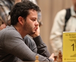 24.03.2012 - Wie schon gestern zu beobachten war, häufen sich die Remisen an den Spitzenbrettern bei der 13. European Individual Chess Championship 2012 enorm - so auch in der heutigen fünften Runde. Lediglich zwei Partien an den ersten vierzehn Brettern fanden einen Sieger. Zunächst schlug der Franzose Laurent Fressinet den Russen Artyom Timofeev, danach legte Yuriy Kuzobov aus der Ukraine gegen den Moldauer Viktor Bologan nach. Spitzenreiter Gawain Jones gab gegen Nikita Vitiugov seinen ersten Halben ab und bleibt daher mit den erwähnten Siegern in Führung. Arkadij Naiditsch remisierte an Brett 2 gegen den Slowenen Luka Lenic, ebenso wie Daniel Fridman an Brett 31 gegen den Ungarn Tamas Banusz. Ein Paukenschlag gelang dem deutschen Großmeister Frank Holzke (Bild von G. Souleidis) mit seinem Sieg gegen den jungen Top-GM Anish Giri, welcher somit virtuell unter die 2700er-Marke rutscht. Alle Achtung! Ergebnisse, Tabelle, Paarungen & Bilder... Offizielle Turnierseite Zahlen & Fakten bei Chess-Results.com