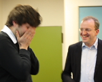 12.03.2011 - Heute fiel der offizielle Startschuss für das 20. Amber Chess Tournament. Begonnen wurde traditionell mit Blindschach, und die zahlreichen Kiebitze bekamen sogleich einige "Überseher" serviert. Besonders geärgert haben dürfte sich Anish Giri, denn dieser hatte gegen Levon Aronian mit Dame für zwei Läufer eine glatte Gewinnstellung erreicht, aber der findige Armenier sorgte so lange für maximale Verwirrung, bis sein junger Gegner schließlich einbrach und tatsächlich noch verlor. Mit großer Spannung war auch das zweite Aufeinandertreffen zwischen Weltmeister Viswanathan Anand und Veselin Topalov seit der WM 2010 in Sofia erwartet worden. Anand erreichte in der Blindpartie die bessere Stellung, gewann im Endspiel einen Bauern und letztlich auch die Partie, wobei Topalov am Ende vermutlich eine Chance zum Remis verpasste. Unter dem Strich wurden fünf der sechs heutigen Blindpartien entschieden, lediglich Hikaru Nakamura und Magnus Carlsen trennten sich nach hartem Fight unentschieden, wobei der Amerikaner kurz vor dem Ende gleich zweimal einzügig seinen Turm einstellte, was sein norwegischer Gegenüber jedoch genauso oft "übersah". In der ersten Schnellschach-Session dann wurden die Visiere allenthalben so richtig hochgeklappt. Giri und Aronian beispielsweise stürzten sich regelrecht aufeinander, und erneut hatte letzterer - seines Zeichens immerhin der amtierende Schnellschach-Weltmeister - die Nase vorn und gewann so sein erstes Mini-Match mit 2:0. Selbiges gelang auch Vugar Gashimov gegen Vassily Ivanchuk. Ebenfalls voll punkten konnte Carlsen gegen Nakamura. Der Chess960-Weltmeister mutete seinen König einfach zu viel zu und wurde von der Nummer 2 der Weltrangliste sehenswert überspielt. Besonders zufrieden mit dem ersten Tag dürfte auch Alexander Grischuk sein, denn ihm wurde die seltene Freude zuteil, gleich zwei Partien in Serie gegen Vladimir Kramnik zu gewinnen. Das Führungsquartett an der Spitze der Gesamtwertung komplettiert Boris Gelfand. Der Israeli schlug gegen Sergey Karjakin ebenfalls doppelt zu. Auch beim Schnellschach endete nur eine Partie remis. Anand und Topalov teilten gerecht den Punkt. Ergebnisse, Tabellen, Partien & Bilder... Offizielle Turnierseite