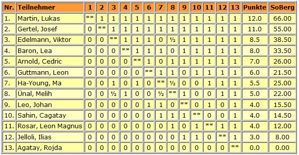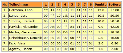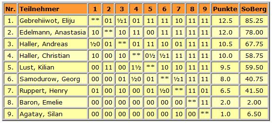 MTSJ-Blitz-EM 2013 - U16 bis U20 Endstand nach 10 Runden (2 Durchgänge)