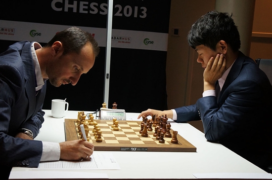 14.05.2013 - Der komfortable Vorsprung von Sergey Karjakin in Stavanger schmilzt dahin. Zwar sprang er heute Viswanathan Anand so gerade noch von der Schippe, aber Magnus Carlsen presste mal wieder das Maximum aus Teimour Radjabov heraus und liegt somit nur noch einen halben Zähler zurück. Näher heran ist auch Levon Aronian gekommen. Jon Ludvig Hammer stellte für den Zweiten der Weltrangliste kein wirkliches Problem dar. Damit liegt der Armenier nun punktgleich mit Hikaru Nakamura auf Rang 3. Der Amerikaner remisierte eine packende Partie gegen Peter Svidler. Die unspannende Ausnahme der sechsten Runde stellte nur die Partie zwischen Veselin Topalov und Wang Hao dar, die folgerichtig remis endete. Am Mittwoch kommt es u. a. zum norwegischen Duell. Was wohl los ist, wenn Hammer gewinnen sollte? Wer das nicht verpassen will, kann ab 15 Uhr live dabei sein. GM Klaus Bischoff kommentiert das Geschehen bei ChessBase.