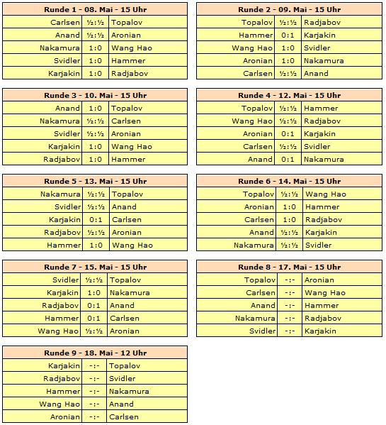 TopTurniere Norway Chess 2013 - Karjakin, Carlsen und Anand punkten voll Ruhetag am Donerstag