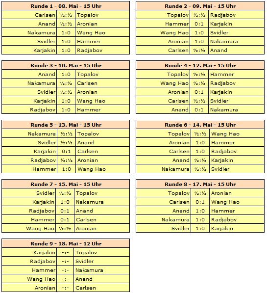 TopTurniere Norway Chess 2013 - Jetzt wird's richtig spannend! Anand siegt, Karjakin und Carlsen verlieren Schlussrunde bereits um 12 Uhr
