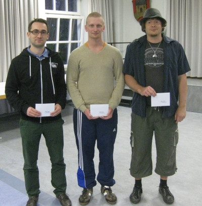 v.l.: IM Alexander Gasthofer (2. Platz), IM Matthias Dann (1. Platz), FM Christoph Schild (3. Platz)