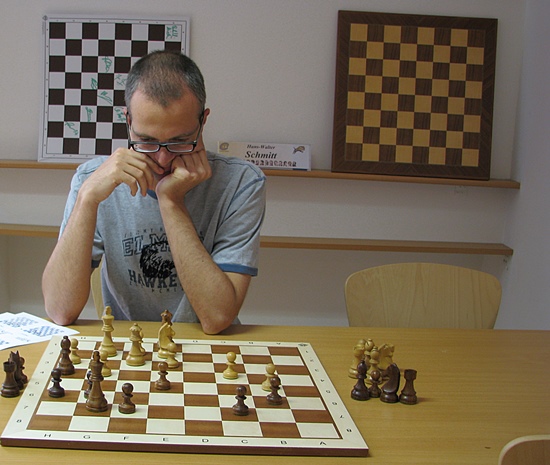 Achtzehn Teilnehmer hatten sich am letzten Juni-Wochenende in der "B9", Brunnenstraße 9, im beschaulichen Taunusstädtchen Bad Soden eingefunden, um den Worten und Übungen von Großmeister Michael Prusikin zu folgen. Der auf allen Ebenen des Schachtrainings tätige junge Vater mit den beiden Kindern, das erste 4 Jahre alt und das zweite erst 4 Monate alt, hat große Erfahrungen auf dem Gebiet des Schulschachs angesammelt und natürlich bei der Ausbildung von Jugendlichen, wie den deutschen Meistern Hanna Marie Klek und Léon Mons sehr nachhaltig ausgebildet. Darüber hinaus begleitet er auch das Team der Deutschen Schachjugend auf Europa- und Weltmeisterschaften und ist bestens gerüstet im pädagogischen Bereich der schachlichen Ausbildung von Talenten. In der Bundesliga und der Schweizer Staatsliga ist er ebenso tätig, und brachte von "Letzterer" den Skalp seines Kollegen GM Jörg Hickl mit! Alles einfach gute Voraussetzungen, um auch ein effektives Trainingsseminar mit normalen Vereinsspielern durchzuziehen. Einige wichtige Themen des zweitägigen Seminars in Bad Soden: Springer am Rand, zentrale Mehrheit, Damenflügelbauernmehrheit, Angriff auf die Spitze der Bauernkette, günstiger Hebel, wann Damentausch, Dame + Springer gegen Dame + Läufer, Bauern auf der Farbe des Läufers, Dame hinter die Türme in der offenen Linie, vom Zentrum wegschlagen, wann Turmpaar abtauschen, und, und, und, ...