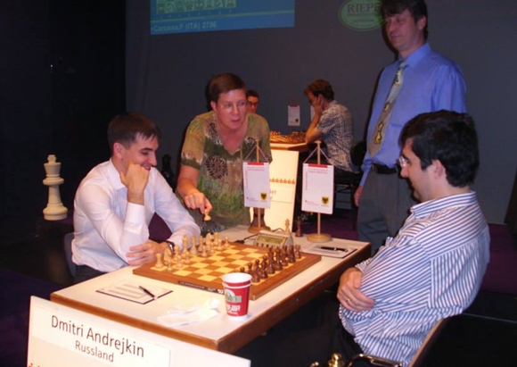 02.08.2013 - Mit seinem dritten Sieg in Serie und dem fünften insgesamt hat Michael Adams beim 41. Sparkassen Chess-Meeting zwei Runden vor dem Ende die alleinige Führung übernommen. In der heutigen siebten Runde musste Igor Khenkin erleben, in welch bestechender Form der Brite ist. Bei diesem Tempo ging nun auch Vladimir Kramnik die Puste aus. Der Russe unterlag Landsmann Dmitry Andreikin. Doch noch ist er nicht endgültig abgehängt, denn in der Schlussrunde steht das direkte gegen Adams an, dessen Performance aktuell jenseits der 3000(!) schwebt. Seinen zweiten Gewinn konnte Arkadij Naiditsch landen und sich so zu Georg Meier auf den dritten Rang vorschieben. Die deutsche Nr. 1 schlug Wang Hao, während Meier gegen Fabiano Caruana nach wechselhaftem Verlauf remisierte. Gut möglich, dass der Deutsche den Italiener an einer Stelle hätte knacken können. Auch Daniel Fridman teilte mit Remiskönig Peter Leko den Punkt. Wenn Sie live erleben wollen, ob schon in Runde 8 die Vorentscheidung über den Turniersieg fällt, sollten Sie entweder frühzeitig in Dortmund sein, oder um 15 Uhr am Rechner sitzen.