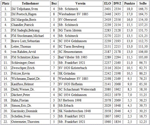 Der Hessische Blitzmeister der kommenden Saison steht übrigens schon in diesem Jahr fest, denn wenn er einmal gewinnt, und das war bisher viermal der Fall, dann kommt im nächsten Jahr ein weiterer Titel hinzu.