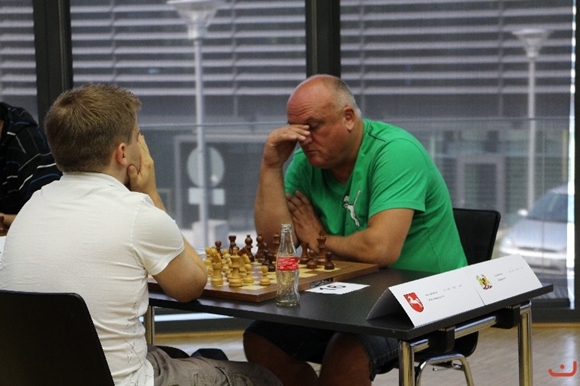 06.09.2013 - Heute um 14 Uhr ist in Saarbrücken im Olypiastützpunkt Hermann-Neuberger-Sportschule die Deutsche Schacheinzelmeisterschaft in ihre 84. Auflage gestartet. Zwei Damen und 40 Herren aus allen Himmelsrichtungen sind am Start, um in einem Rutsch 9 Runden Schweizer System zu absolvieren. Mit Titelverteidiger Daniel Friman, Rainer Buhmann, Martin Krämer und Klaus Bischoff sind vier Großmeister zur Hermann-Neuberger-Sportschule gereist. Eine kurze Anreise hatte der über 20fache Saarländische Meister Herbert Bastian, der bekanntlich auch unser aller DSB-Präsident ist. Zum Auftakt bekam er es gleich mal mit Fridman - also der Nr. 1 der Setzliste - zu tun und schnappte sich einen halben Punkt. Wirklich große Überraschungen blieben zum Auftakt aus. Die 2500er Bischoff und Rene Stern mussten Hans-Joachim Vatter bzw. Andre Oberhofer ein Remis gestatten, doch das kann im Schweizer System am Anfang auch von Vorteil sein. Die zweite Runde beginnt am Samstag um 14 Uhr.