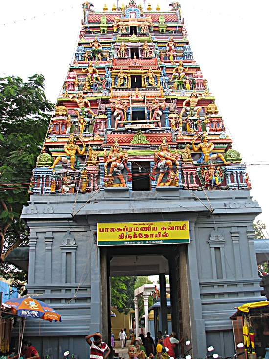 Spaziergang in Chennai - Impressionen Die Tempel artigen Eingänge können bis zu 38.000 (achtunddreißigtausend) Abbildungen umfassen, denn soviele Götter gibt es in Indien und die Reinkarnation schreitet weiter fort.