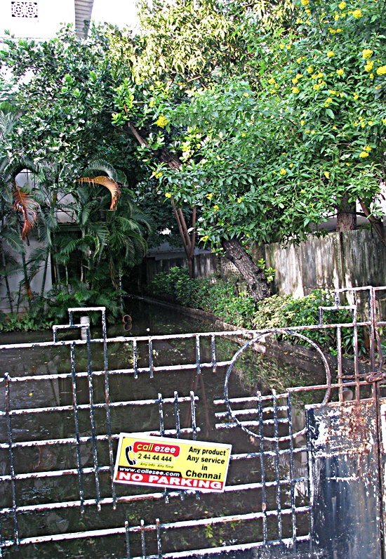 Spaziergang in Chennai - Impressionen Das Wasser dieses Monsuns steht überall hoch in den Einfahrten und kann nicht so schnell ablaufen, denn hier hat man ja den Effekt "Verdampft schneller, als ablaufen" bei 29 Grad Celsius!