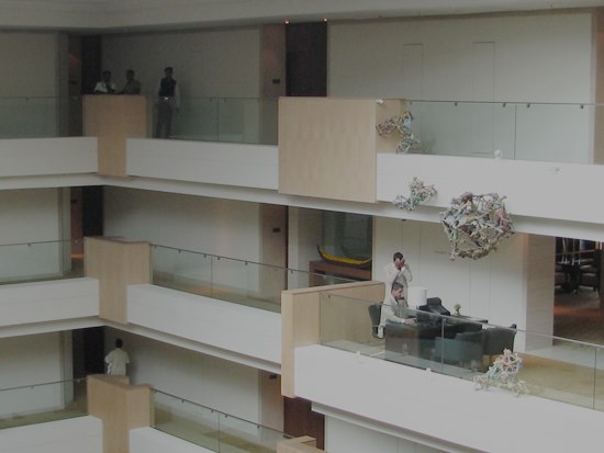 Hyatt 10.Etage - Blick nach links In jeder Etage gibt es auf dem Weg zu den Aufzügen unterschiedlich gestaltete, beleuchtete Skulpturen