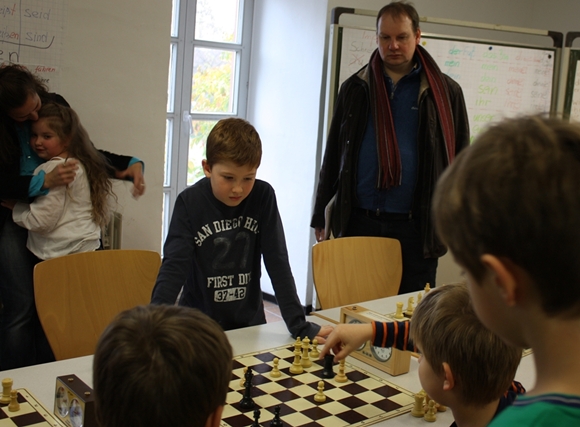 Zusammen mit Roland Bettenbühl hieß es, die auf drei Räume verteilten Turniere im Blick zu behalten, wobei ich selbst von den anwesenden Kindern ausschließlich U8er trainiere und daher - bis auf kurze Stippvisiten bei der U12 und U10 - bei den Jüngsten blieb. Dass sowohl Jan-Frederik Werndl als auch Alexander Beruda in ihren Altersklassen einen ausgezeichneten vierten Platz erreichten, sehen wir Chess Tigers Trainer als Beleg dafür, dass wir unsere Kinder richtig erziehen. Wir können uns darauf verlassen, dass sich unsere Schüler am Brett zu jeder Zeit tadellos verhalten und in dem für sie nötigen Rahmen absolut regelfest sind! Nein, die anderen Kinder sind keine Rüpel - ganz besonders nicht in der U12 und U10, aber bei dem schachlich durchaus beachtlichen Niveau bei den U8ern wünscht man sich ab und an, die Lehrer würden weniger auf Tricks wie Schäfermatt pochen und von der ersten Unterrichtseinheit an mindestens so viel Wert auf das Benehmen am Brett legen. Zum Thema Schäfermatt weiter unten mehr.