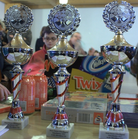 27.11.2013 - Im Alten Posthof in Hattersheim fanden am Sonntag vor einer Woche die Main-Taunus-Schnellschachmeisterschaften der U8, U10 und U12 statt. Zu früher Stunde hatten sich zahlreiche Eltern aus dem Bett gequält, um den vermutlich schon längst munteren Nachwuchs pünktlich um 10 Uhr in den Vereinsräumen des SC 1979 Hattersheim am Brett sitzen zu haben. Kein Wunder, dass dann so gegen 10:30 Uhr erste Unruhe aufkam, weil noch immer nicht in allen Gruppen gespielt wurde. Druckerprobleme ließen sich erst nach mehreren Anläufen beheben, so dass man schließlich die Paarungen handschriftlich in die jeweiligen Räume lieferte. Gespielt wurde jeweils ein 7-rundiges Turnier im Schweizer System mit der Bedenkzeit 20 Minuten pro Spieler und Partie. Aus Chess Tigers Sicht lag die volle Aufmerksamkeit auf den insgesamt 10(!) teilnehmenden Kindern des SC Bad Soden. Der überwiegende Anteil wird nämlich vom Chess Tigers Training Center teils in der Schule, teils im Center und teils in beidem unterrichtet. Da Cheftrainer Hans-Walter Schmitt als Delegationsleiter des Teams Anand bei der Weltmeisterschaft im indischen Chennai weilte, übernahmen der Vorsitzende des SC Bad Soden Roland Bettenbühl und meine Wenigkeit die schachliche Betreuung. Um es vorweg zu nehmen, einen Podiumsplatz konnten unsere Jungs dieses Mal nicht erhaschen, dennoch verrät der Titel dieses Artikels, dass ihre Trainer nicht unzufrieden sind. In der U12 und der U10 mussten zwei Titelkandidaten leider absagen, doch Jan-Frederik Werndl (U12) und Alexander Beruda (U10) schlugen sich mit ihren vierten Plätzen sehr achtbar. Bei der U8 waren wir richtig stark vertreten, doch zu viele vergebene Elfmeter verhinderten letztlich mehr als "nur" gute Platzierungen. So richtig glänzend war jedoch das durch die Bank tolle und schon sehr professionelle Verhalten der Bad Sodener Spieler! Doch mehr dazu im weiteren Text...