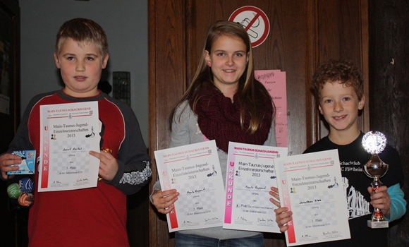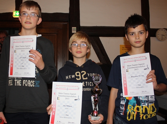 In der U12 gab es kein Vertun, Leon Hollmann beherrschte das Feld wie ein echter Champion. Als Titelverteidiger hatte er offenbar das Ziel, seine 6 aus 7 aus dem Vorjahr nochmals zu toppen. Selbst, als ihm in der Schlussrunde ein Remis reichte, ließ der junge Mann vom SV 1920 Hofheim nicht locker und siegte mit nicht zu übertreffenden 7 aus 7 vor Alexandros Pavlidis (SV 1920 Kelsterbach) auf Platz 2 und Lars Lange (Sfr. 1932 Kelkheim) auf Platz 3.