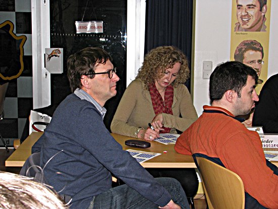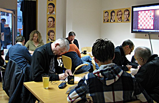 Der Däne Lane Hakan kommt extra nach Frankfurt am Main, um dem Hamburger Endspielexperten Dr. Karsten Müller zu lauschen, dabei zog es ihm sogar die Schuhe aus!