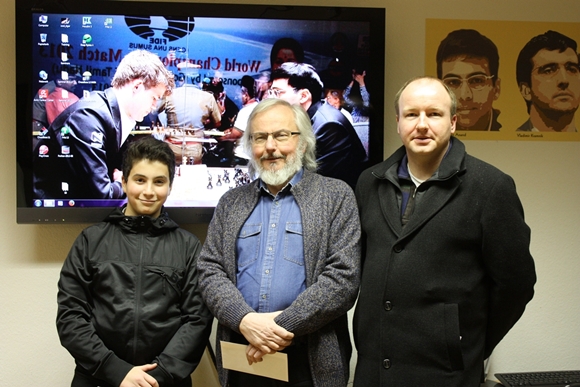 FM Igor Zuyev (links) und IM Sven Telljohann rahmen den Sieger ein