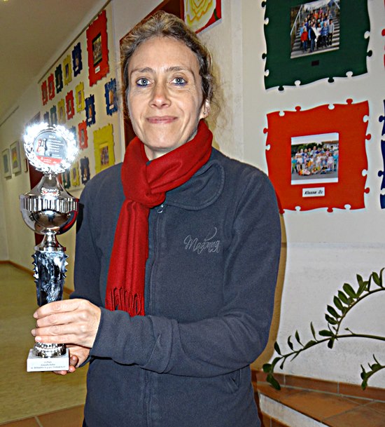 "Geschwister-Scholl-Schule" - Wie gefeierte Rockstars müssen sich die Jungs gefühlt haben, als der große Pokal an die Schulleiterin Frau Annette Rosenstock übergeben wurde. Sie haben etwas Wertvolles ihrer Schule nach Schwalbach in die Eschborner Str. 2 gebracht und zu Hause haben sie ihrem kleinen Erinnerungspokal an einen schönen Platz gegeben. "Das war der schönste Tag in meinem Leben", als er den großen Pokal noch einmal wehmütig und mit großem Stolz in den Händen der Schullleiterin noch einmal richtig ansah, " ... und ich war dabei!"
