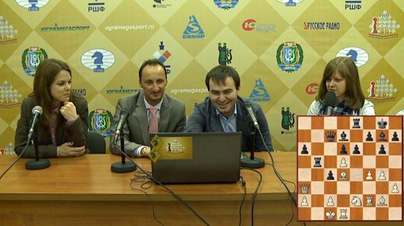Gleich wird Levon Aronian 3.Db3!? spielen und Viswanathan Anand mächtig überraschen