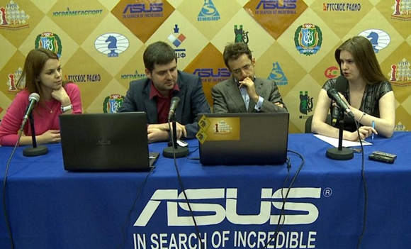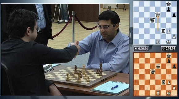 26.03.2014 - Mindestens ein Mal muss es bei so einem starken Feld passieren, dass es keinen Sieger gibt. Alle vier Partien der 11. Runde des Kandidatenturniers endeten unentschieden, wobei es heute genauso unfair wäre wie in den Runden zuvor, Friedfertigkeit zu unterstellen. Natürlich war Viswanathan Anand mit einem Schwarzremis gegen Vladimir Kramniks Katalanisch nicht unzufrieden, zumal sich an den Nebenbrettern ebenfalls wenig wahre Action ergab. Lediglich Veselin Topalov machte es gegen Sergey Karjakin unnötig spannend. Er gestattete dem Russen im Endspiel ein aussichtsreiches Qualitätsopfer für zwei starke Freibauern, aber schließlich konnte der Bulgare eine Festung errichten. Diese unblutige Runde kommt nur Anand zu Gute, welcher einen guten Schritt näher am Turniersieg ist. Allerdings warten besonders in den Runden 13 und 14 mit Karjakin und Svidler noch zwei "direkte" Konkurrenten auf den Inder. Morgen um 10 Uhr startet Runde 12, wieder mit GM Klaus Bischoff live auf ChessBase als Ihr Kommentator.