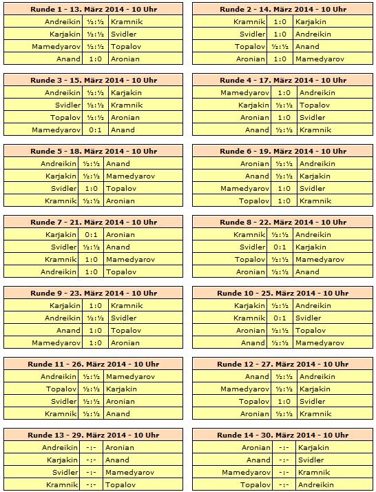 TopTurniere Candidates 2014 - Anand fast am Ziel Vorentscheidung vor dem letzten Ruhetag verpasst