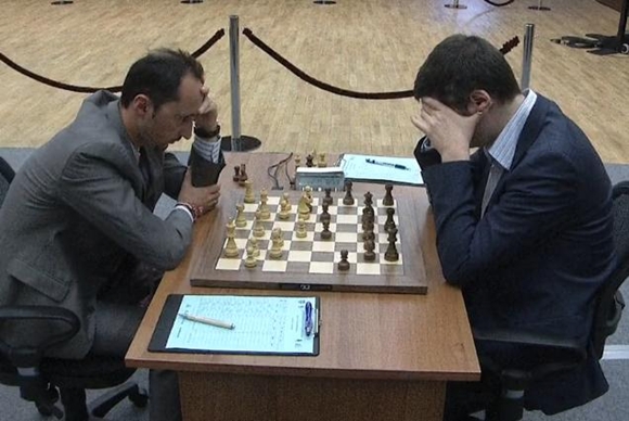 27.03.2014 - Viel hat nicht gefehlt, dann wäre das Kandidatenturnier mit der heutigen Runde 12 schon so gut wie entschieden gewesen. Gegen Dmitry Andreikins Kopie von Carlsens Caro-Kann bei der WM 2013 erhielt Viswanathan Anand eine ausgezeichnete Stellung und hätte beinahe auch gewonnen. Doch das Gegenspiel des findigen Russen beeindruckte den 15. Weltmeister doch etwas mehr als nötig, und so stimmte er lieber einem Remis zu. Da Levon Aronian gegen Vladimir Kramnik ebenefalls nicht über ein Remis hinaus kam, Sergey Karjakin Gleiches gegen Shakhriyar Mamedyarov ereilte, und Peter Svidler gegen Veselin Topalov unterlag, kann sich Anand weiterhin komfortabel an der Spitze halten. Rechnerisch ist natürlich noch Einiges möglich, aber so langsam darf der amtierende Weltmeister seine erneute Vorbereitung auf den Inder beginnen.
