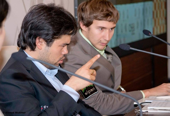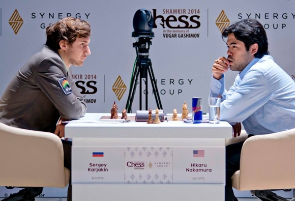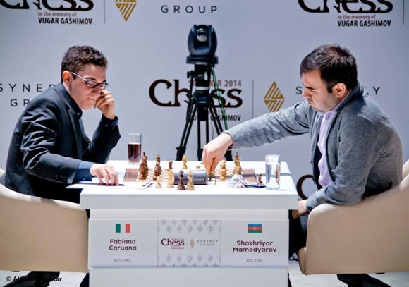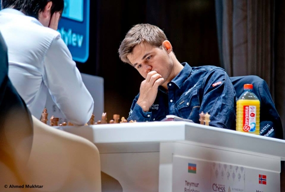 24.04.2014 - Ist man bei einem Gegner als "guter Klient" bekannt, und heißt dieser Gegner auch noch Magnus Carlsen, dann hat man in der Regel ein unlösbares Problem. Teimour Radjabov hat seit 2008 keine Partie gegen den jetzigen Weltmeister gewonnen und musste gegen diesen in der heutigen fünften Runde des Gashimov Memorials mit Schwarz spielen. Mit der Schachliebe seines Lebens - der Königsindischen Verteidigung - machte der Aseri gleich die erste Kampfansage und nutzte in der Folge die seltenen Fehler Carlsens perfekt zu einem hochverdienten Sieg. Jede Serie reißt irgendwann, bestimmt auch die von Carlsen. Zwei Niederlagen en suite setzte es für ihn zuletzt in Bilbao 2010, eine dritte wird er in Runde 6 garantiert mit aller Kraft zu verhindern suchen. Für Radjabov nahmen die guten Nachrichten noch kein Ende, denn Landsmann Shakhriyar Mamedyarov knetete Fabiano Caruana so lange, bis dieser kurz vor dem Remis einen dicken Bock schoss und verlor. Somit gibt es einen durchaus überraschenden Wechsel an der Spitze. Den Platz an der Sonne hat jetzt Radjabov inne und zwar alleine. Sehr spannend war auch das Remis zwischen Hikaru Nakamura und Sergey Karjakin. Beide Seiten lösten die die wechselseitigen Probleme sauber und erreichten so das logische Ergebnis.