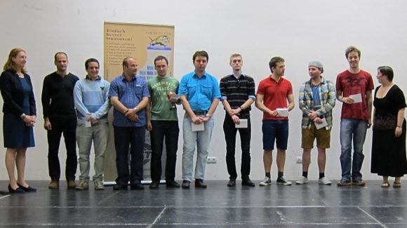 v.l.n.r: GM Misa Pap (1. Platz), GM Spyridon Skembris (1. Platz), Lev Yankelevich (3. Platz)
