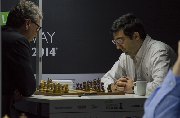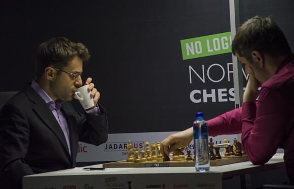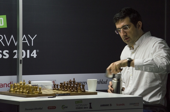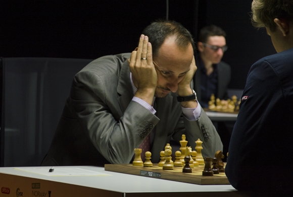 07.06.2014 - Nachdem Sergey Karjakin in Runde 4 noch riesigen Dusel gegen Simen Agdestein hatte, geriet er heute gegen Alexander Grischuk erneut in die Bredouille sprich eine Qualität in Rückstand. Aber der Wahl-Russe kniff wieder die Backen zusammen und glich die Qualle Zug um Zug aus. Irgendwann hätte Grischuk auf Remis umschalten müssen, aber er fand den Punkt nicht und verlor. Alle anderen Duelle endeten ausgekämpft ohne Sieger, lediglich Veselin Topalov bewies bei seiner Zugwiederholung in aussichtsreicher Stellung gegen Magnus Carlsen, dass ihm momentan sein sonst berüchtigter Kampfgeist fehlt. Damit führt weiterhin Fabiano Caruana mit jetzt 3/4 vor Vladimir Kramnik mit 2,5 Punkten und einer 5er-Gruppe mit 50 Prozent. Runde 5 beginnt am Sonntag wie gewohnt um 15:30 Uhr und wird wieder live für Sie bei ChessBase von GM Klaus Bischoff kommentiert.