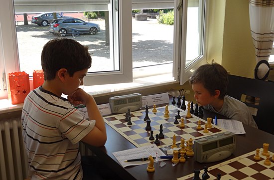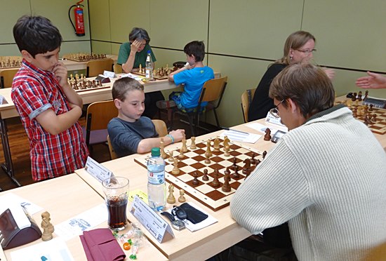 Der ältere Bruder Alexander war auch in toller Form (+28) und sah manchmal seinem Bruder Lukas sehr kritisch zu. Der elfjährige Lukas ließ sich auch nicht durch erwachsene Jugendliche unter 1300er aus dem Konzept bringen. Sieg nach dem Umzug in den Raum A