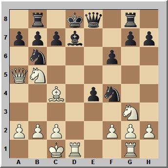 12...a6 büßt eine Figur ein, dürfte aber am ehesten noch Verwirrung stiften beim Gegner: 13.Txd7+! Dxd7 14.Td1 Dxd1+ 15.Kxd1 0–0–0+ 16.Kc1 Sfd5 17.Lxd5 Txd5 18.c4 Te5 19.Sd6+ Kb8 20.Db4 a5 21.Db3
