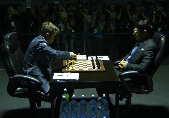 09.11.2014 - Wirklich Sensationelles hat Magnus Carlsen in Sachen Eröffnung scheinbar nicht vorbereitet, er setzt auf seine größte Stärke - das Generieren von Chancen aus einer ausgeglichenen Stellung heraus. Als der Druck auf seinen König für seinen Geschmack zu viel wurde, entschloss sich Anand, in ein klar schlechteres Schwerfigurenendspiel zu gehen und auf seine berüchtigten Verteidigungskünste zu bauen. Tatsächlich gelang es dem Inder, nach und nach etwas von dem weißen Vorteil abzuknabbern, aber dann passierte ihm mit 34...h5?? ein schlimmes Malheur, wonach die Carlschen Schwerfiguren über die 7. Reihe die erste Entscheidung dieser noch jungen Weltmeisterschaft herbeiführten. Frühe Niederlagen haben nur einen Vorteil: Man hat noch genug Zeit bzw. Partien, um das wieder gut zu machen. Am Montag folgt jedoch zunächst der erste Ruhetag, bevor Anand am Dienstag wieder die weißen Steine führen wird.