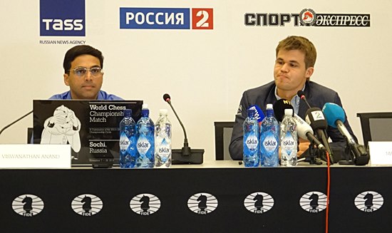 Die Pressekonferenz gehörte dem Sieger Anand