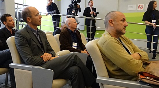 Vom italienischen Restaurant "Filini" im Radisson Blu zurückkommend in die oberste Etage konnten wir noch eine kurze Weile auf dem Balkon stehen und dem lebhaften Treiben der Illuminationskunst der fast leeren Olympiastadt unsere Aufmerksamkeit schenken. Die ständig wechselnden Farben der fünfgeschossigen Häusergiebel faszinierten und hatten durch ihre Farbregie doch etwas regelmäßiges, sich wiederholendes mit der ganzen Stille von Sochi. Kein lautes Hundegebell, kein eindringliches Katzenmiauen, kein verwirrenden Menschengemurmel, sogar das Rauschen der Brandung des Schwarzen Meers war nicht zu hören, einzig das Geräusch der sporadisch ab- und anfahrenden schweren deutschen Limousinen von Mercedes, BMW und Audi, neben klappernden Ladas und Moscwitschs war zu hören. Unwillkürlich kehrten die Gedanken in den wunderbaren Raum des gemeinsamen Schacherlebens zurück, wo wir alle gemeinsam dem guten Essen frönen konnten. Hier saßen die Protagonisten Anand und Carlsen mit ihrem A- und C-Teams höchsten fünf Meter entfernt angeregt parlierend zusammen, als wenn nachmittags im Expo Centrum nichts geschehen wäre. Mit den Kommentatoren Peter Svidler und Alexandra Kosteniuk und den Journalisten aus der Niederlande Peter Doggers, Jan Dirk ten Geuzendam und dem einzigen aus Deutschland kommenden Ulrich Stock war das Erleben perfekt, um in Mitten der kompletten Organisationsverantwortlichen, Sponsoren und deren Freunden und natürlich der Fide-Verantwortlichen und Honoratioren "Gens una Sumus" zu fühlen. Irgendwie faszinierend diese übersichtlich und doch undurchschaubare kleine Schachwelt!