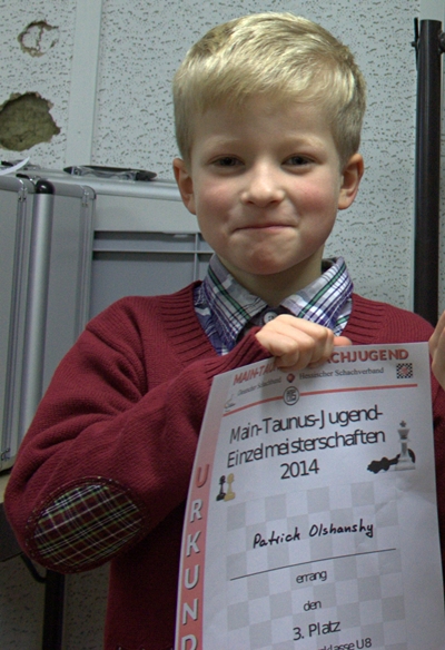 24.11.2014 - Am Sonntag wurde nicht nur die Schach-WM entschieden, für zahlreiche Schachjünglinge ging es in Hattersheim bei den Main-Taunus-Schachjugend--Einzelmeisterschaften der Altersklassen U12, U10 und U8 ebenfalls hoch her. Gespielt wurden jeweils 7 Runden Schweizer System mit 20 Minuten Bedenkzeit. Das größte Kontingent an jungen Schachschülerinnen und Schülern stellte der SC Bad Soden. Unterrichtet werden die meisten dieser Kinder von Trainern des Chess Tigers Training Centers - so auch unser Sensationssieger in der U10, Boyan Blagoev. "Läuft bei Dir" ist laut Langenscheidt ab sofort Jugendwort bzw. -satz des Jahres und soll hier eindeutig "Du hast es drauf!" bedeuten. Mit unglaublichen 7 aus 7 fegte Boyan durch das 28-köpfige Feld - in keiner Partie geriet er in ernste Verlustgefahr, was auf diesem Niveau wahrhaftig sensationell ist. Ganz stark war auch der Auftritt unseres Jan Werndl in der U12. Erst im finalen Stichkampf musste er sich Marius Bajorski beugen, doch die Freude über den Silberrang überwog zum Glück recht bald wieder. Die Bad Sodener Medaillenpalette komplett machte Patrick Olshansky mit seinem dritten Rang in der U8. Der bärenstarke Sonny Kimmel aus Kelsterbach siegte dort mit 7/7! Bisher wurden leider noch keine Tabellen veröffentlicht, weshalb ein ausführlicher Bericht noch etwas warten muss. Dort muss unbedingt auch die Anwendung der geänderten FIDE-Regeln besprochen werden. Macht es Sinn, dass in diesen Klassen auch beim Schnellschach ein unmöglicher Zug sofort verliert?