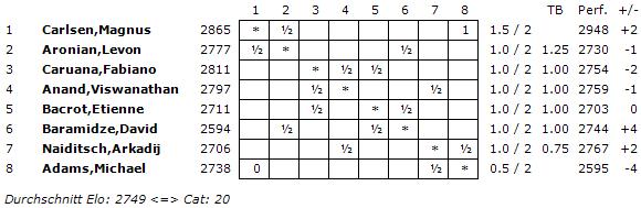 Mit einem ELO-Schnitt von 2749 wurde die Turnierkategorie 21 hauchdünn verpasst.