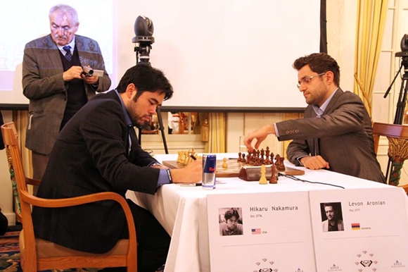 18.02.2015 - Mit drei Unentschieden endete die letzte Runde des Hauptturniers der Zürich Chess Challenge, welches somit von Viswanathan Anand gewonnen wurde. Ziemlich zeitig hatten zunächst Hikaru Nakamura und Levon Aronian alle Klötzchen abgetauscht und ein totes Bauernendspiel erreicht. Einige Zeit später folgten Fabiano Caruana und Vladimir Kramnik, die nur 28 Züge spielten, aber dennoch keine weitere Schnellpartie austragen brauchten. Der Turniersieger erlebte einige Auf und Abs gegen Sergey Karjakin, doch letztlich wurde auch hier die Remisbreite nie wirklich überschritten. Da die Punkte des Hauptturniers mit denen des morgigen Schnellschachturniers addiert werden, steht der endgültige Sieger in Zürich noch nicht fest. Und weil die Punkte des Hauptturniers doppelt gezählt werden, startet Anand morgen quasi mit einem Punkt Vorsprung. Beim Schnellschach werden die Punkte nämlich normal gezählt. Beginnen wird das Turnier um 13 Uhr. Für die Paarungen werden im Vergleich zum Hauptturnier einfach die Farben getauscht.